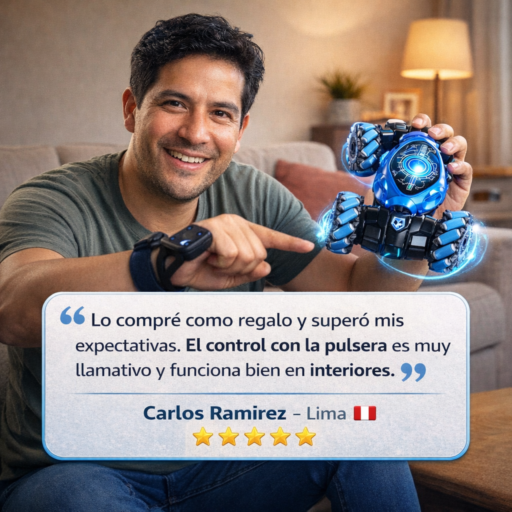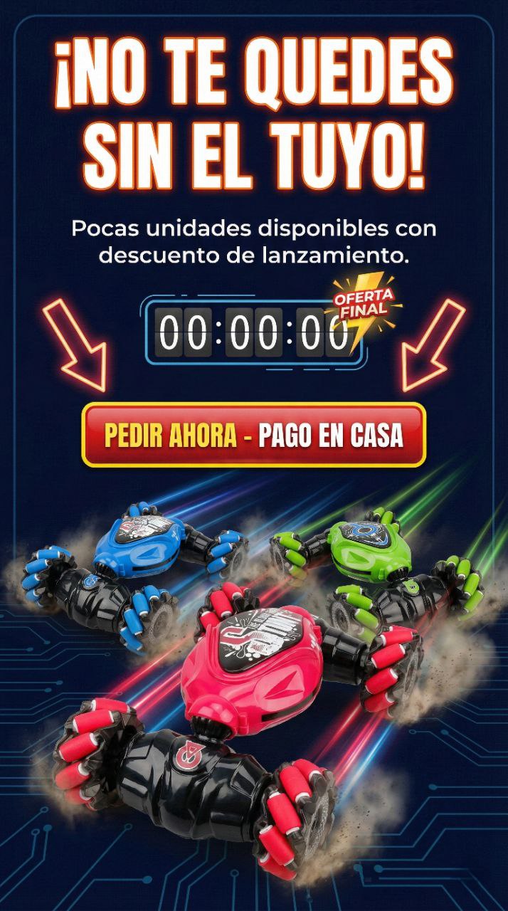 Descubre la fusión perfecta entre tecnología gestual y resistencia extrema. Controla giros, derrapes y música con el movimiento de tu mano. Diseñado para soportar el juego más intenso y garantizar horas de diversión lejos de las pantallas